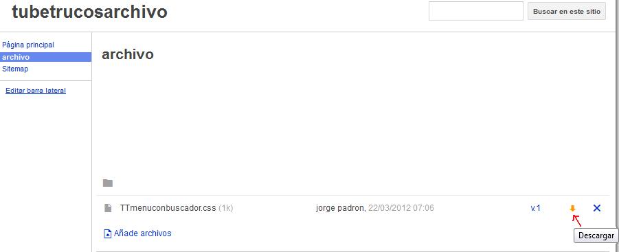 Por último, cuando el archivo ya se ha subido, aparecerá a la derecha una flecha hacia abajo con un enlace para Descargar.