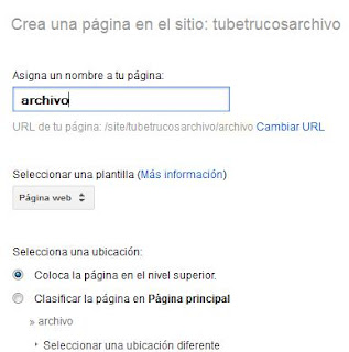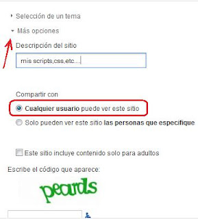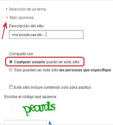Para crearla a la isquierda en el boton de crear .Una vez hecho esto, aparecerá una nueva página con diversas opciones de diseño. Escoge el diseño que te atraiga, indica el nombre y en el enlace desplegable denominado 'Mas opciones' asegúrate de haber marcado la casilla 'Compartir con todo el mundo' (para hacer pública la página).