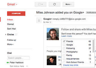 Ahora, cuando un usuario reciba una notificación de que otra persona ha comenzado a seguirlo, desde ese propio email podrán elegir el círculo al que quieren añadirlo.Todo esto sin dejar la cuenta de email. Como se hace esto pues con solo pasar el mouse,ratón por encima del botón “Add to circles” y es todo,esto sólo funciona en Gmail.