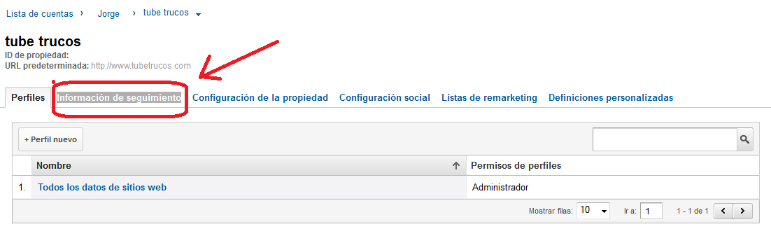 Para aquella persona que ya haya hecho el cambio de plantilla y se ha olvidado de guardar el código de google Analytics, podrás recuperarlo fácilmente desde tu cuenta de Google Analytics.lo que tendríamos que hacer es: